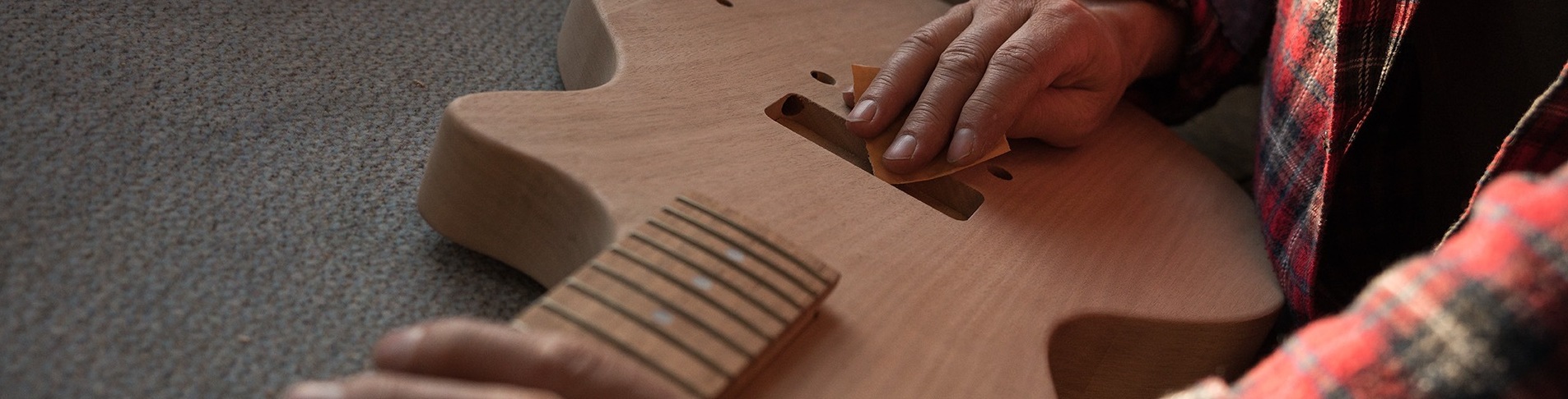 Mit handwerklicher Präzision, Liebe zum Detail und großer Sorgfalt verarbeite ich hochwertige Hardware und Komponenten verschiedener Hersteller. In meinem kleinen, feinen Holzlager warten klassische Instrumentenbau-Hölzer wie Ahorn, Erle, Mahagoni oder Esche darauf, zu Deinem individuellen Instrument zu werden. Viele davon lagere ich selbst schon 20 oder 30 Jahre oder habe sie aus Auflösungen alter Holzlager gekauft. Daneben verfüge ich auch über weniger bekannte, aber hervorragend geeignete Tonhölzer. Ich verwende gerne auch Hölzer aus der Region, die ich direkt beziehe und selbst trockne und lagere. Darüber hinaus pflege ich gute Kontakte zu Tonholzspezialisten, verschieden Hardware-Lieferanten und Pickup-Herstellern.